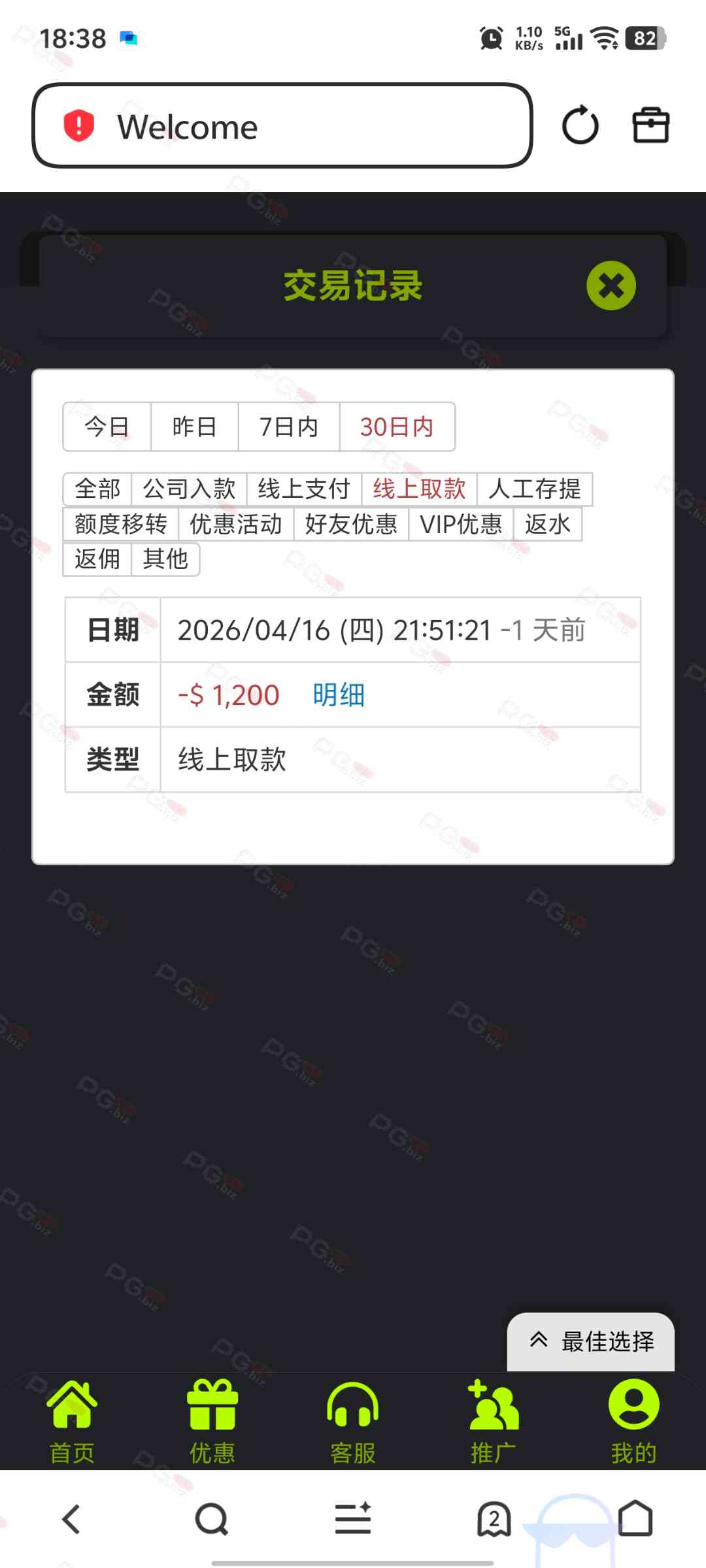 撸成功的老哥,请跟客服说您是从PG论坛 【PG.Biz】过来的。
