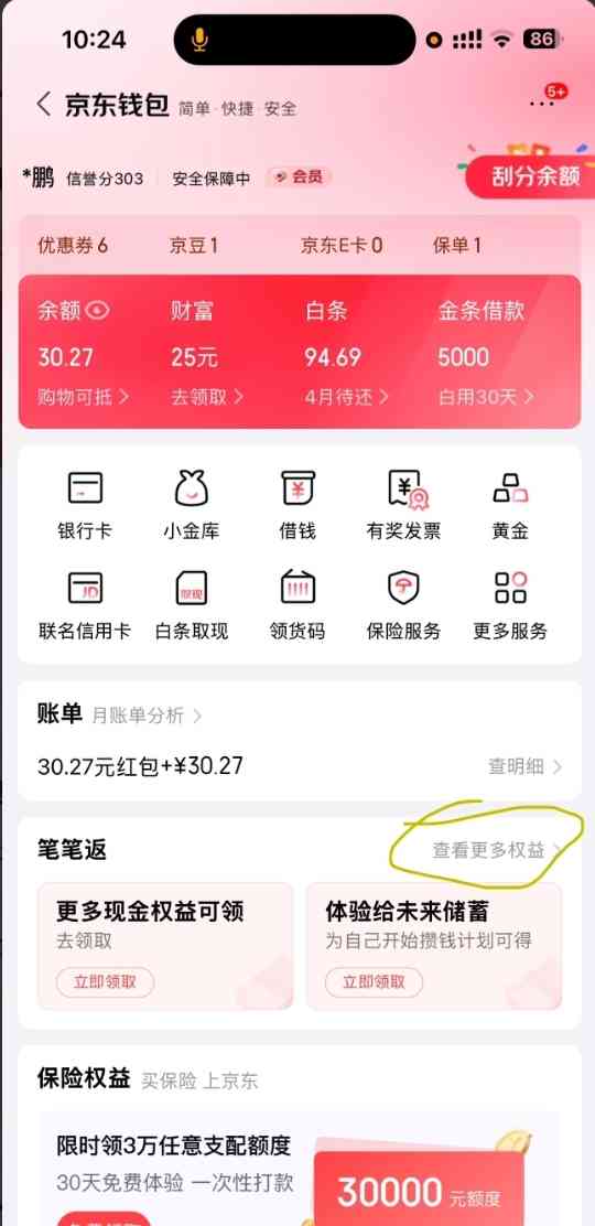 京东-钱包-笔笔反 入口看下图